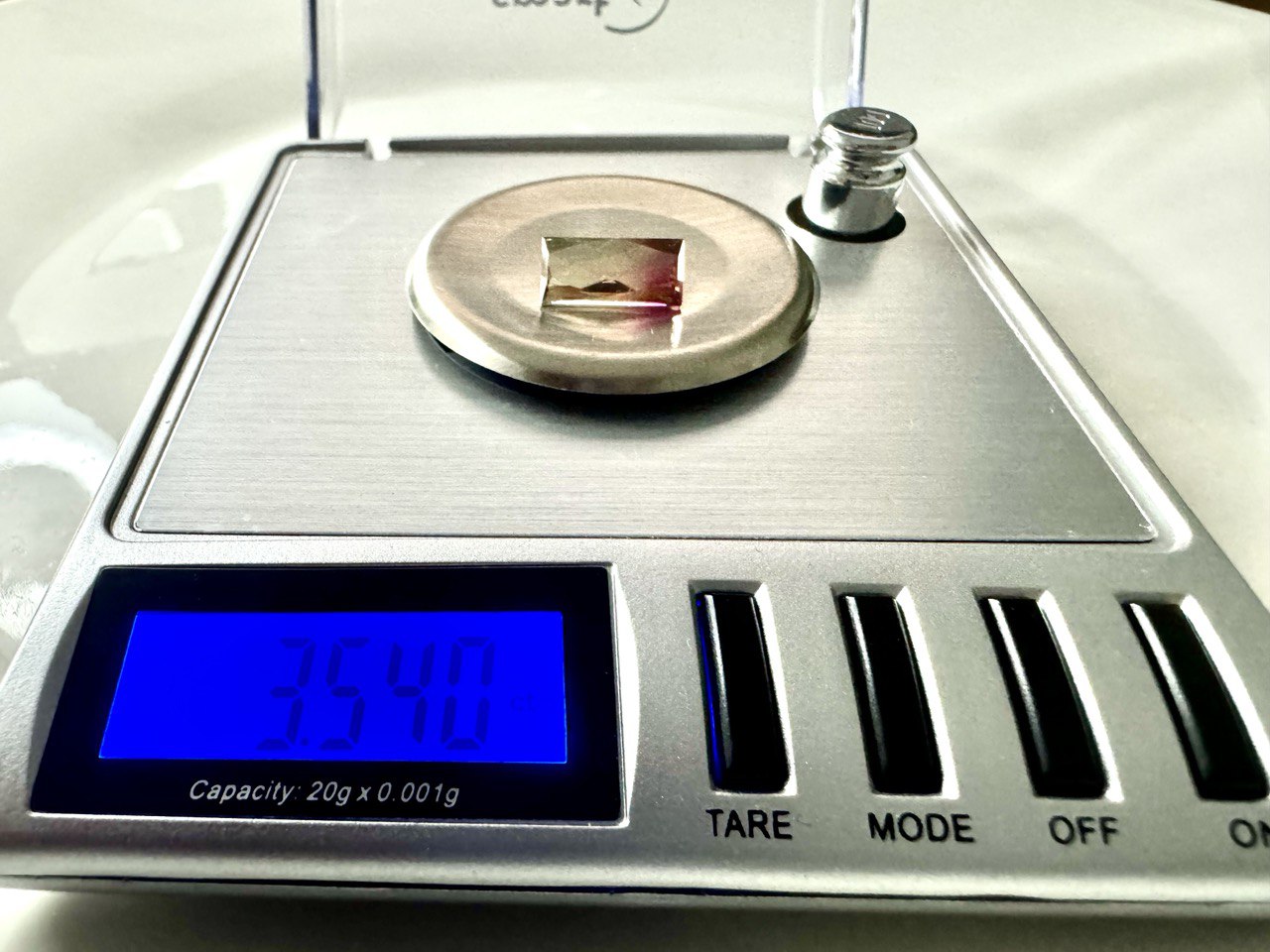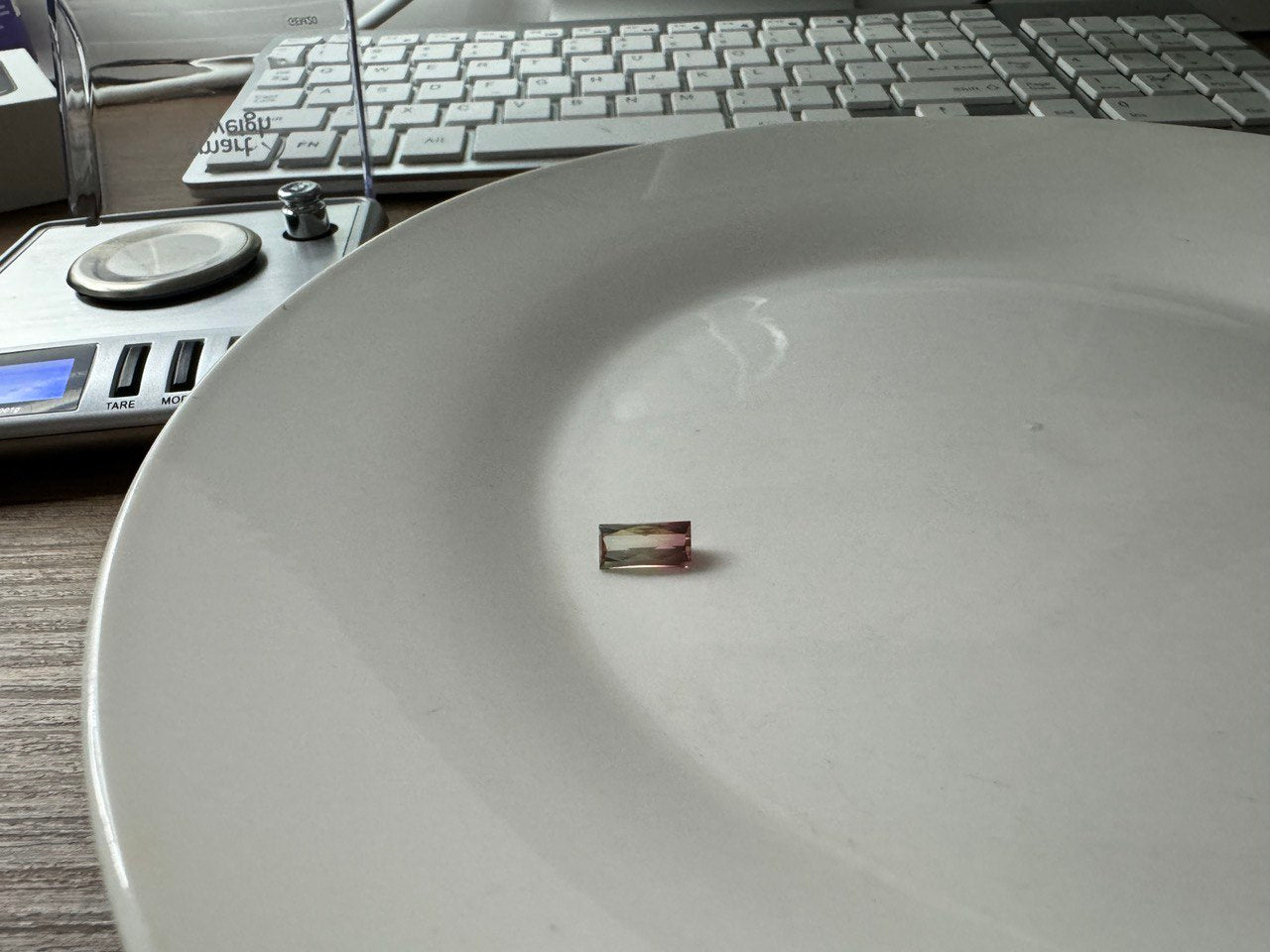 This 3.54 carat natural Pale Green to Pink Tourmaline was found in Democratic Republic of Congo. Purchased directly from local dealers and cut in Tanzania by Maria. Tourmaline has a hardness of 7-7.5 on the Mohs hardness scale.