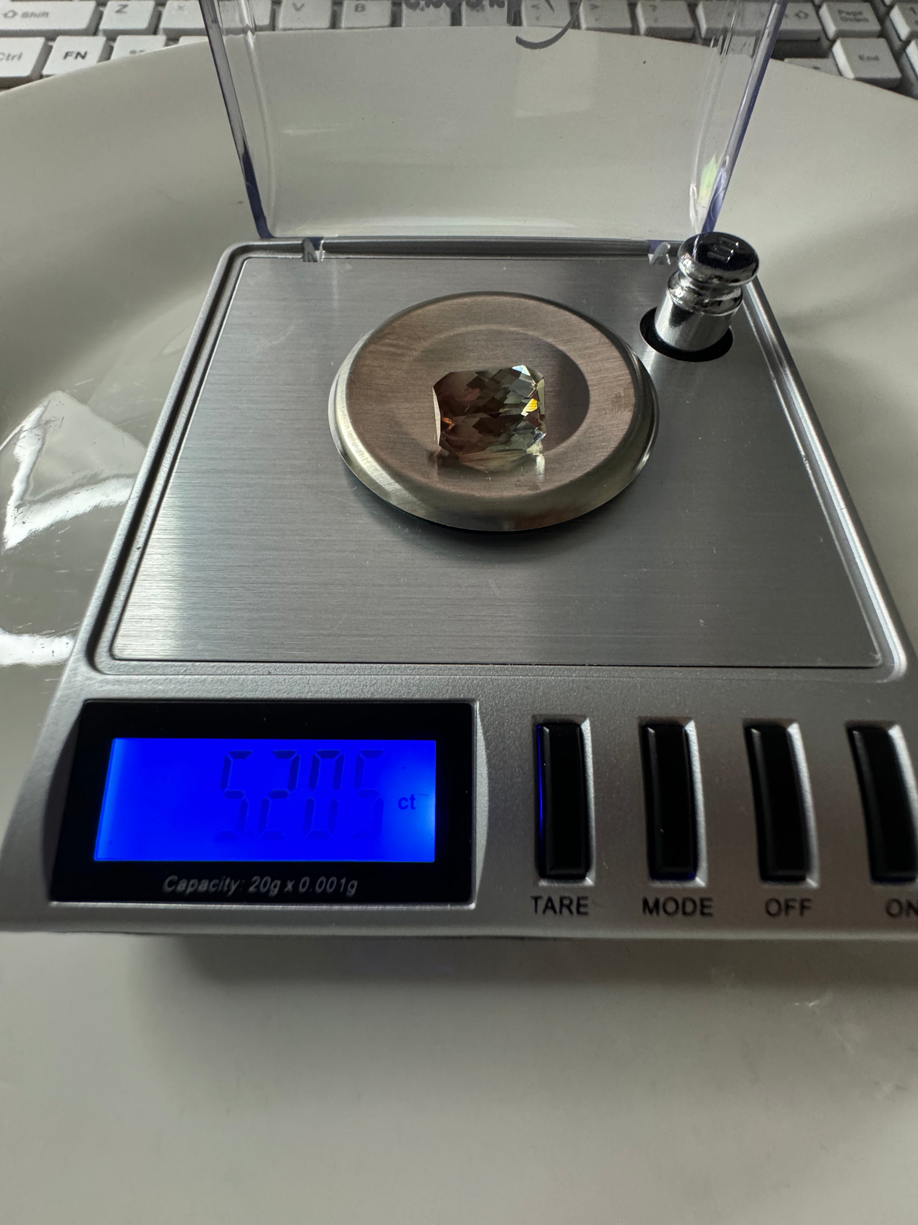 This 3.54 carat natural Pale Green to Pink Tourmaline was found in Democratic Republic of Congo. Purchased directly from local dealers and cut in Tanzania by Maria. Tourmaline has a hardness of 7-7.5 on the Mohs hardness scale.